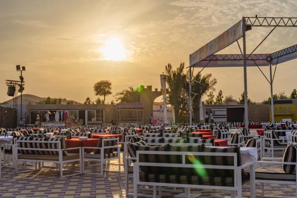 For your Evening Desert Safari in Dubai, we recommend wearing light, comfortable, and modest clothing suitable for the desert climate – think cotton or linen fabrics. Closed-toe shoes or secure sandals are advisable for walking on the sand. As the desert temperature can drop after sunset, especially during cooler months (October to March), it’s a good idea to bring a light jacket, sweater, or shawl. Don’t forget sunglasses and sunscreen for before sunset!
