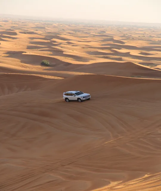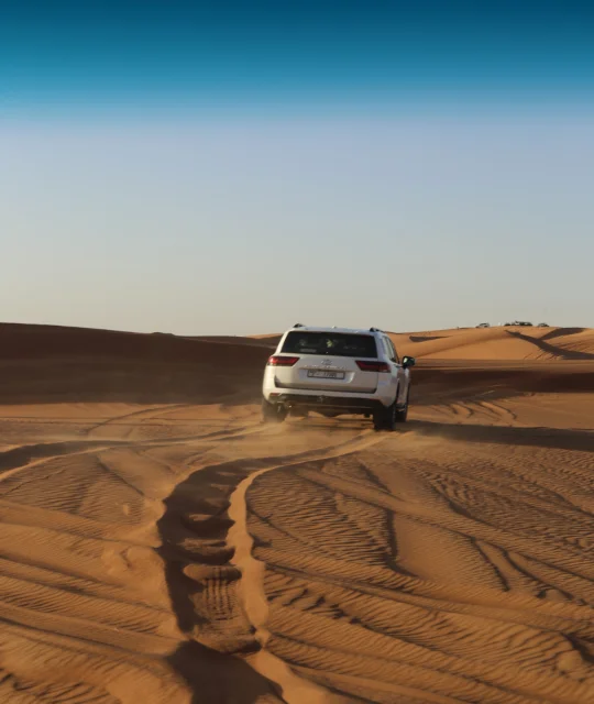 Your premium Dubai desert tour begins with a convenient hotel pickup in a climate-controlled luxury 4×4 SUV.