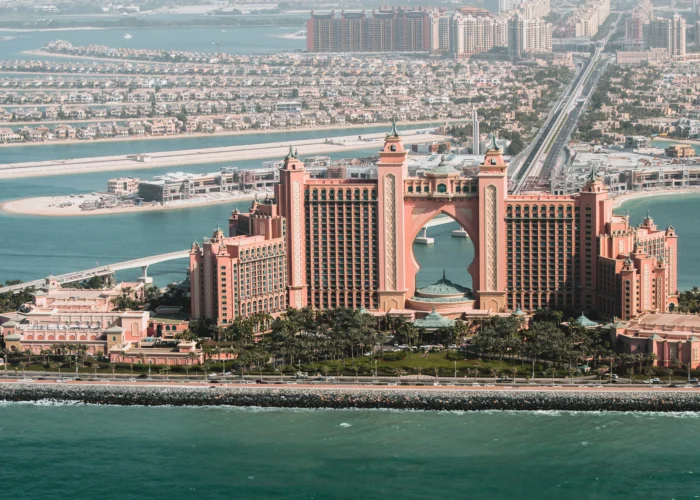 Go from Downtown Dubai to The Palm. It is an artificial island with many luxury hotels, restaurants, and shopping.