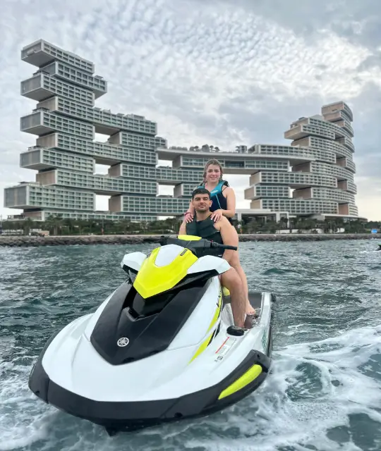 Your journey begins at our Jumeirah base with our standard comprehensive safety briefing and training on our powerful Yamaha jetskis. Once you’re geared up, you’ll embark on an extended guided tour. For two full hours, you’ll have the freedom to experience everything our shorter tours offer and more. We’ll cruise past the Burj Al Arab, then head out for an in-depth exploration of the Palm Jumeirah, getting up close to both the iconic Atlantis, The Palm and the spectacular new Royal Atlantis. The extended time allows for a more relaxed pace, multiple photo stops, and the chance to truly master the jetski and enjoy the open water. This is, without a doubt, the most complete and thrilling jetski sightseeing experience in Dubai.